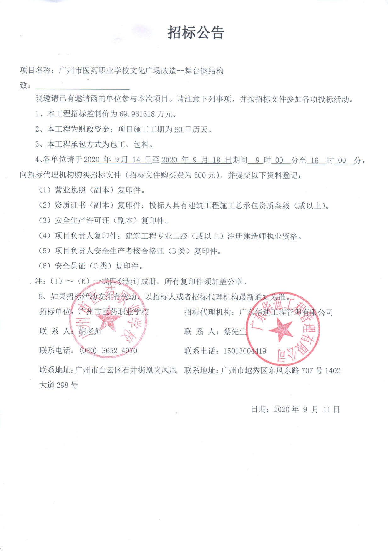 招標(biāo)單位:廣州市醫(yī)藥職業(yè)學(xué)校 | 招標(biāo)代理機(jī)構(gòu):廣東華迪工程管理有限公司 |