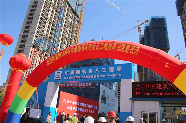 為進一步推動集團工程質(zhì)量安全管理標準化提升,加強精細化管理,促進創(chuàng)建精品工程,近日,集團工程管理部、安全辦聯(lián)合組織各單位總工、工程科、安全科人員,在哈項目經(jīng)理、技術、質(zhì)量等負責人40余人,參加了哈爾濱市建筑業(yè)協(xié)會工程質(zhì)量監(jiān)督與檢測分會組織,中建八局承辦的哈爾濱萬達文化旅游城配建住宅-2一期項目現(xiàn)場觀摩會,參觀了中建八局工程質(zhì)量常見問題的專項治理、施工現(xiàn)場質(zhì)量安全標準化樣板工地、綠色施工管理理念、質(zhì)量管理體系標準化展示、質(zhì)量管理行為標準化展示、質(zhì)量過程管控標準化展示、施工工藝標準化展示、細部節(jié)點標準化展示、BIM技術展示、新技術應用展示等標準做法。