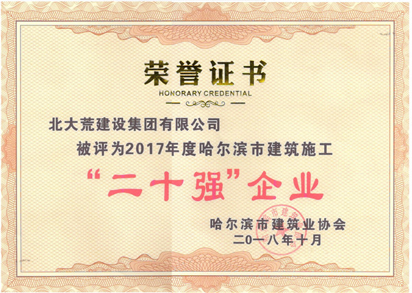 北大荒建設(shè)集團(tuán)入圍哈爾濱市建筑業(yè)“二十強(qiáng)”企業(yè)