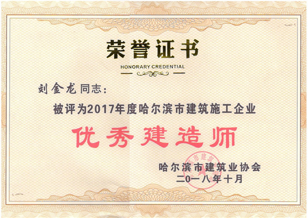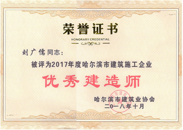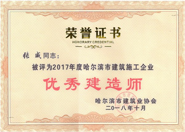 喜訊傳來(lái)。近日,哈爾濱市建筑業(yè)協(xié)會(huì)公布了2017年度哈爾濱市建筑業(yè)“二十強(qiáng)”企業(yè)、“優(yōu)秀建造師”名單,北大荒建設(shè)集團(tuán)榮登企業(yè)光榮榜,榮獲“二十強(qiáng)”企業(yè)榮譽(yù),張威、劉廣儒等同志榮獲“優(yōu)秀建造師”稱號(hào),再次為打造優(yōu)秀企業(yè)文化名片貢獻(xiàn)新力量。