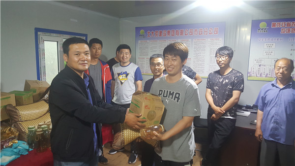 尹萬才經(jīng)理特別強調(diào),高溫天氣使施工安全隱患增多,安全生產(chǎn)風險加大,在全力推進項目建設的同時,要注意勞逸結(jié)合,注意防暑降溫,防止中暑引發(fā)安全事故。工地現(xiàn)場負責人李春波代表工人對領(lǐng)導的關(guān)心和問候表示感謝,并積極表示會全力做好防暑降溫工作,合理安排工序和休息時間,在確保施工人員身體健康的前提下,繼續(xù)加強工程安全和質(zhì)量意識,保質(zhì)保量完成各階段目標。