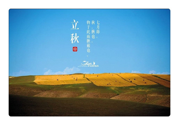 立秋是二十四節(jié)氣中的第十三個(gè)節(jié)氣,秋,指作物快要成熟之意,立秋是秋天的開始,秋高氣爽,月明風(fēng)清,此后,氣溫逐漸下降。我國古代將立秋分為三候:“一候涼風(fēng)至;二候白露生;三候寒蟬鳴。”是說立秋過后,吹風(fēng)時(shí)人們會感覺到?jīng)鏊?,此時(shí)的風(fēng)已不同于暑天中的熱風(fēng);接著,大地上早晨會有霧氣產(chǎn)生,感陰而鳴的寒蟬也將開始鳴叫。