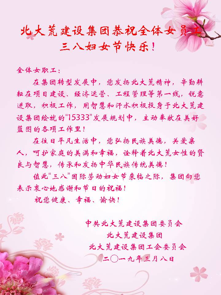 北大荒建設(shè)集團恭祝全體女員工三八婦女節(jié)快樂