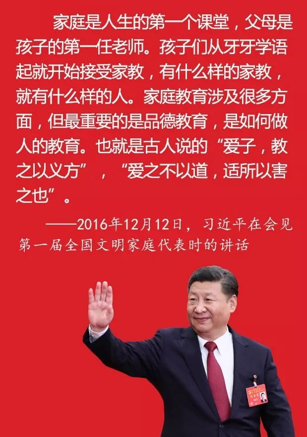 ——2016年12月12日,習近平在會見第一屆全國文明家庭代表時的講話
