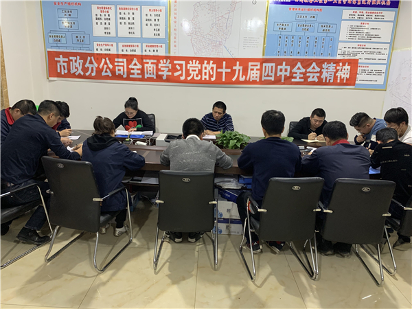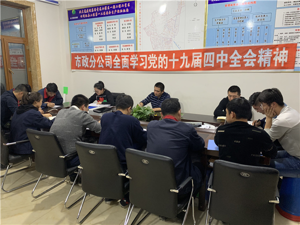 市政分公司把黨的十九屆四中全會精神作為下步工作的指導(dǎo)方針,樹立“新理念”,提高“新站位”,聚焦“新使命”,通過宣講學習,全體員工統(tǒng)一了思想、強化了認識、明確了方向。