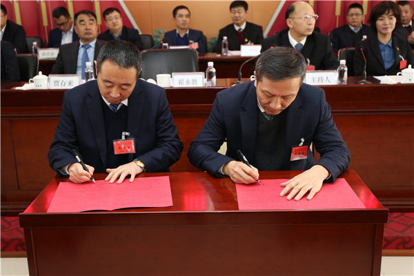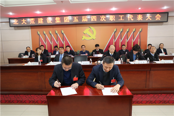 會(huì)上集團(tuán)黨委書記董事長翟永勝分別與工會(huì)負(fù)責(zé)人王鏑簽訂了《北大荒建設(shè)集團(tuán)2020年職工工資專項(xiàng)集體合同》、與路橋公司總經(jīng)理于鳳河簽訂了《北大荒建設(shè)集團(tuán)經(jīng)營合同書》、與第四分公司經(jīng)理包靜偉簽訂了《北大荒建設(shè)集團(tuán)安全、消防、環(huán)保工作責(zé)任狀》、與第二分公司經(jīng)理夏天簽訂了《北大荒建設(shè)集團(tuán)2020年信訪工作目標(biāo)管理責(zé)任狀》。