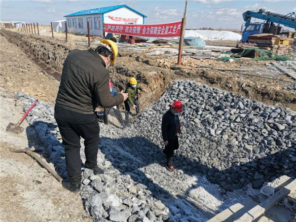 作為國家重點水利工程項目的黑龍江省三江平原青龍山灌區(qū)一期工程前進農(nóng)場田間配套工程,項目區(qū)內(nèi)共布置渠道1833km,水閘、涵洞、泵站等建筑物2833座,示范區(qū)1處,設計灌溉面積2750畝;布設監(jiān)測井17眼。項目計劃工程完工時間為2020年10月30日。五公司領導班子不等不靠,一手抓防疫,一手抓復工。日前正在進行輸電設備安裝、雷諾、啟閉架、閘門安裝的施工。同時,前進二工區(qū)為切實加強和科學指導前進農(nóng)場水利工程防控和復工工作,做到了嚴格履行疫情期間復工復產(chǎn)相關手續(xù),有序組織好疫情期間復工復產(chǎn)工作,掌控好外來務工人員的基本情況,落實好防護用品、消毒藥水等防疫物資的采購和儲備工作。疫情期間嚴格執(zhí)行現(xiàn)場人員24小時值班制度。計劃3月底進場作業(yè)人員達到240人,4月底計劃作業(yè)人員達到310人。