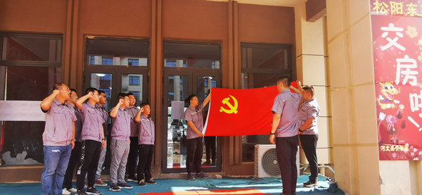 黨支部書記梁吉寶面向黨旗,激動地說,基層黨員干部要立足本職,創(chuàng)造一流業(yè)績,就要始終發(fā)揚大公無私、服從大局、艱苦奮斗、廉潔奉公的精神。作為一名基層黨員干部,要帶頭深入基層,要深入職工,解難題、攻難關(guān)、做奉獻,這樣才能充分發(fā)揮共產(chǎn)黨員的先鋒模范帶頭作用。黨員景國寶說,面向黨旗宣誓,我無比自豪,我們的項目圓滿完工,就是向黨的生日獻上的滿意答卷!