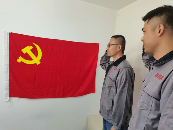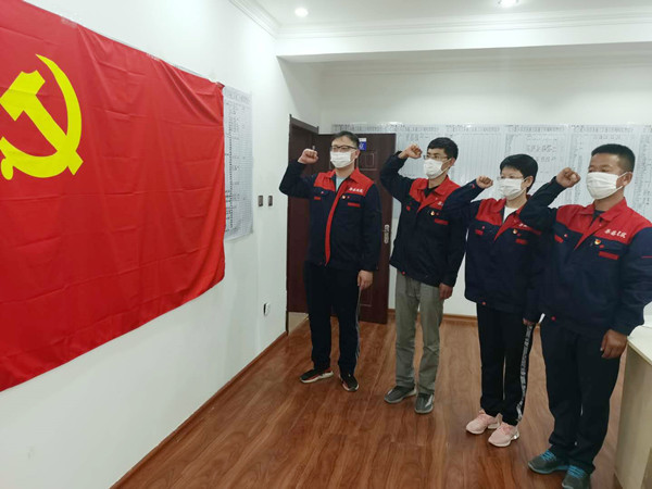 宣誓活動在總部黨員和奮戰(zhàn)在工作一線的黨員同時進行。雖然在不同地域面對著黨旗重溫入黨誓詞,都是對每一位黨員內心黨性的考驗。