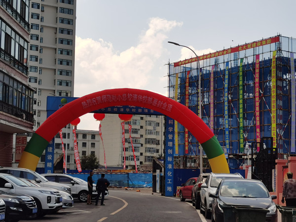 施工現(xiàn)場彩旗迎風飄揚,第五分公司舉行了隆重熱烈的慶祝儀式。南崗區(qū)教育局及師范附屬小學總部各級領導蒞臨指導,共同見證此項工程開工以來最為激動人心的時刻。