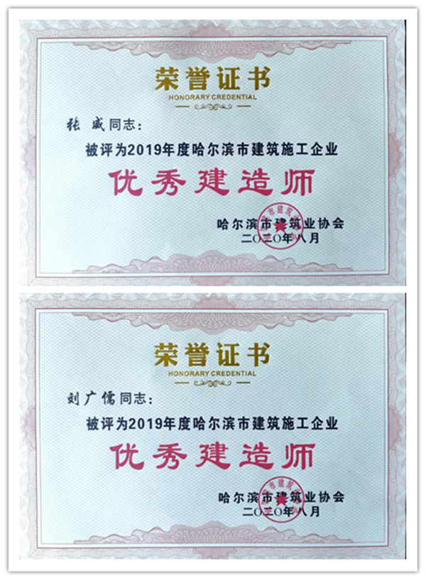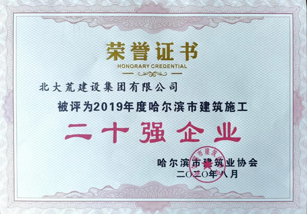 建設(shè)集團(tuán)榮獲“2019年度哈爾濱市“二十強(qiáng)”建筑業(yè)企業(yè)”等多項(xiàng)表彰