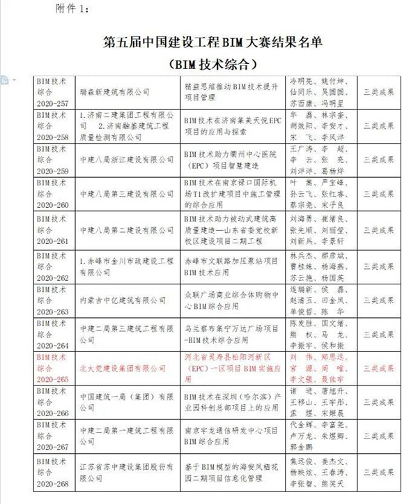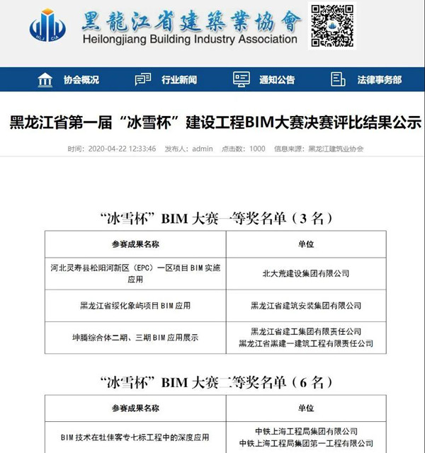 北大荒建設(shè)集團(tuán)喜獲第五屆中國建設(shè)工程BIM大賽三等獎(jiǎng)