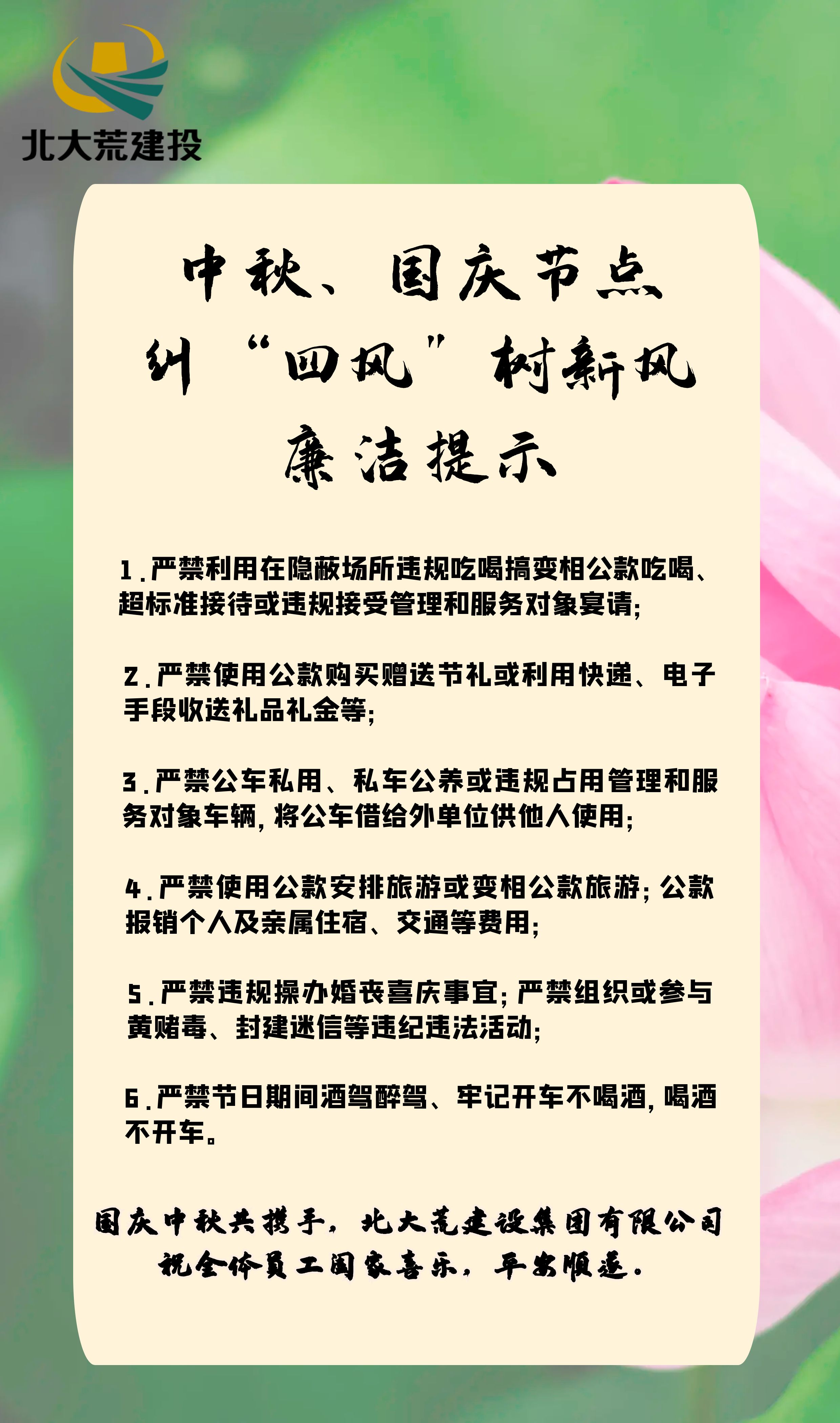 北大荒建設(shè)集團(tuán)有限公司廉潔提示
