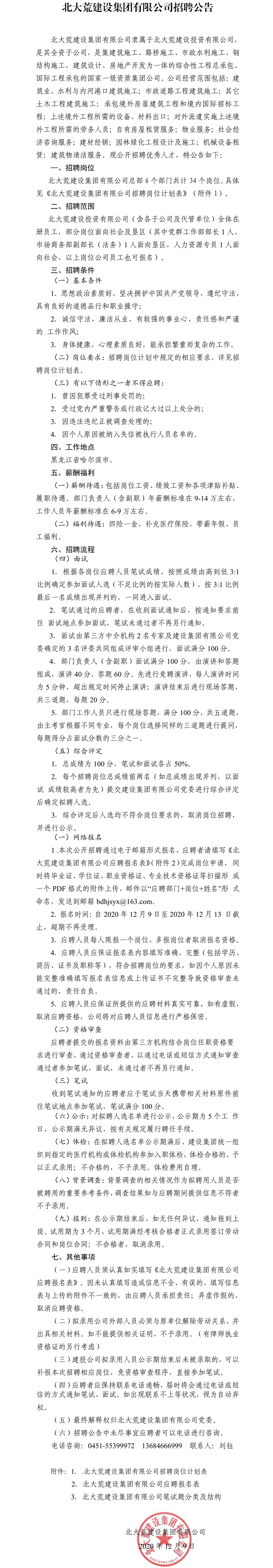北大荒建設(shè)集團(tuán)有限公司招聘公告
