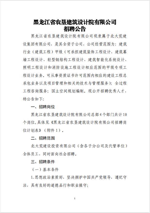 黑龍江省農(nóng)墾建筑設(shè)計院有限公司招聘公告
