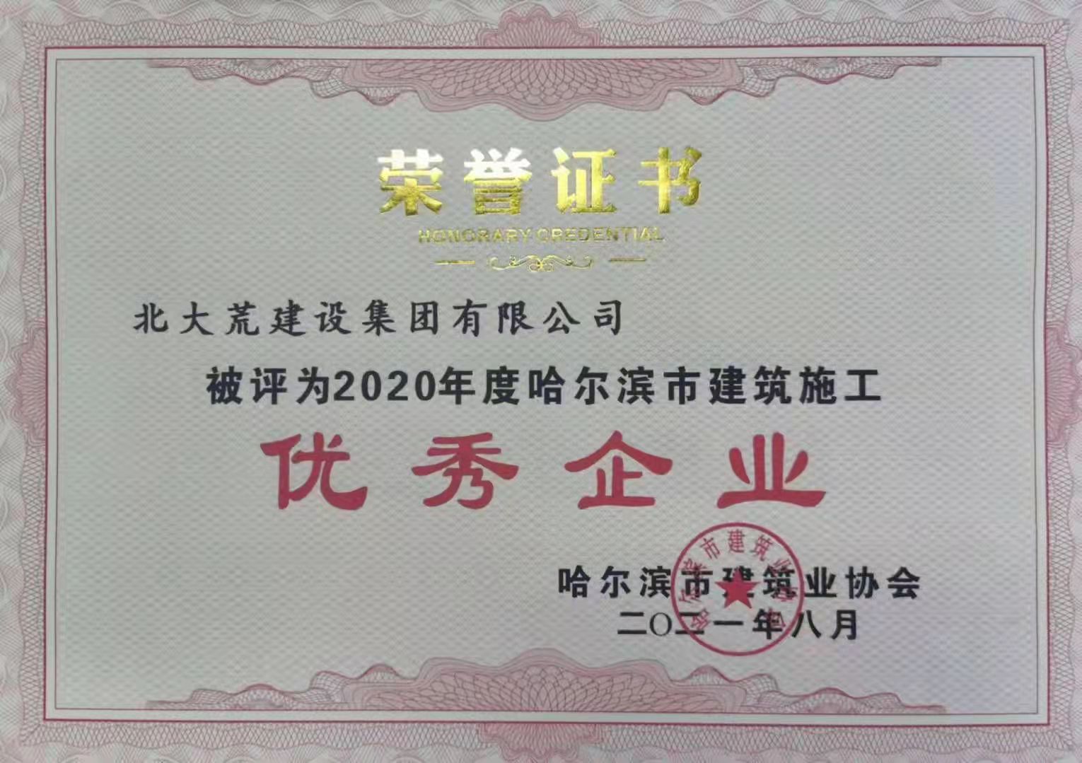 2020年哈爾濱市 優(yōu)秀施工企業(yè)