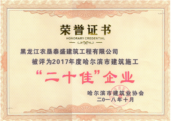 2018年度哈爾濱優(yōu)秀企業(yè)
